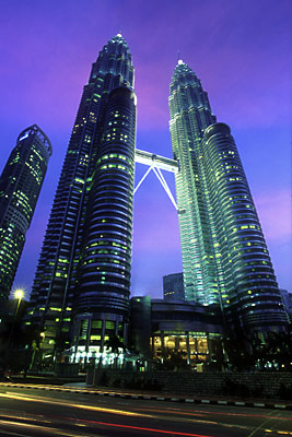 BOUNDARY MARKERS Kuala Lumpurs Petronas Twin Towers mark the northern boundary of the Multimedia Super Corridor MSC. Designed by Cesar Pelli, they were finished in 1996. At 451,9 m and 88 stories they are the worlds tallest office buildings.
