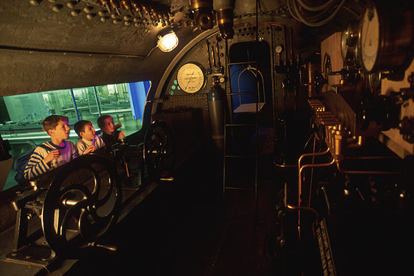 IN THE BASEMENT of the nautical exhibition a key attraction of the museum rests. The first German submarine U1 was built in 1906 as an experimental boat and had to be demilitarized after World War I. Today, visitors can take a look at the interior of the sub through a series of openings in the hull. |