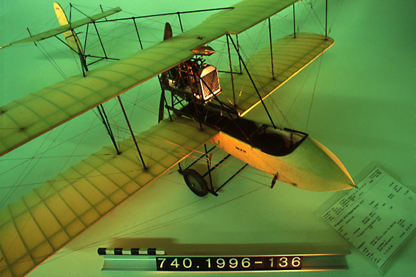 NEW KITE ON THE STOCK In a storeroom of the German Museum a newly made scale model of an historical Otto biplane of 1912 is inventoried. The model airplane was commissioned by the museum and built by a model-makers studio for 11 212.50 DM.