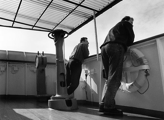 as the two stand on the bridge of