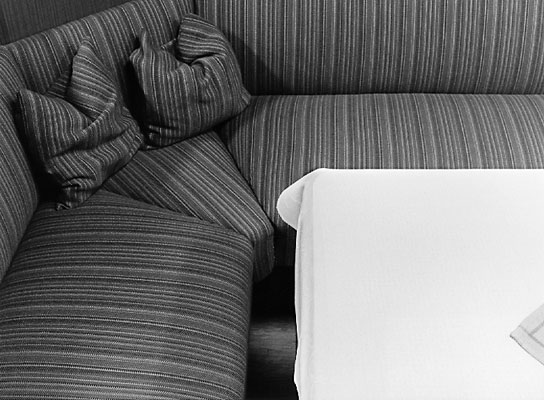 GEMÜTLICHKEIT The ships steward Roland Pape lights a candle for petit bourgeois tradition in the pilots mess of the Kapitän Hilgendorf. Karate-chopped seat cushions demonstrate the pilots need for a homely atmosphere and a bit of good old German tradition. |
