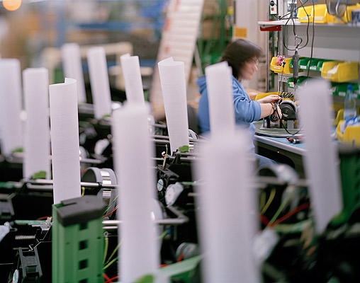 PARTS III Production of franking machines: Silke Hermann pre-assembling chassis for the ‘ultimail’ model.