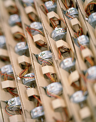 PARTS I Assembly of franking machines from pre-fabricated parts. Stepper motors drive the printer head of the ‘optimail’ model.