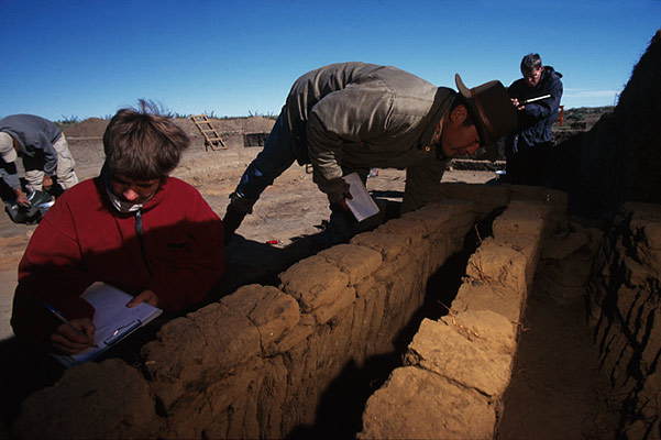 LUXURY IN THE STEPPE KAR2 excavation at ancient Karakorums central crossroads: brick by brick archaeologist Corinne Pohl-Thiblet, at left, and Mongolian head excavator Erdenebat document parts of a heated fireside bench for later reconstruction.