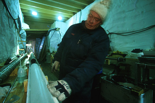 Johnsen examines an ice core