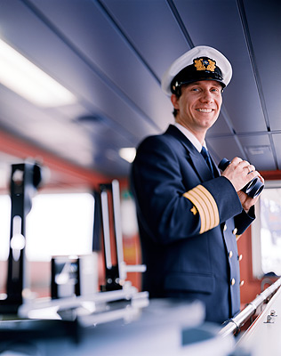 LEADERSHIP Captain Alexander Jabs, born in 1968, standing on the bridge of container ship HATSU COURAGE, which is managed by NSB. Jabs got his first command at the age of 29 and has been working for NSB since 2002.