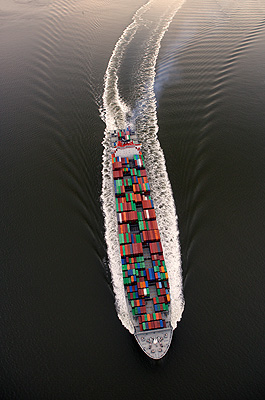 CARRIER OF GLOBALIZATION Container ship ITAL CONTESSA, 334 meters long, in the mouth of the Elbe river off Cuxhaven bound for the Port of Hamburg.
