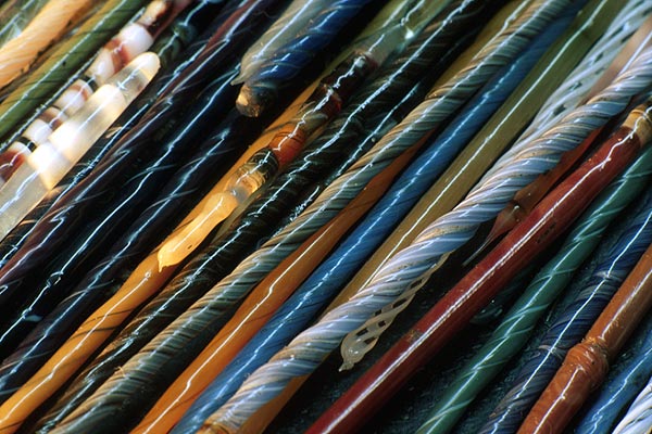 IRIS PATTERN For simulating the iris pattern of the eye prosthesis the ocularist uses glass sticks of various colours and structures which he has fashioned from monochrome glass sticks.