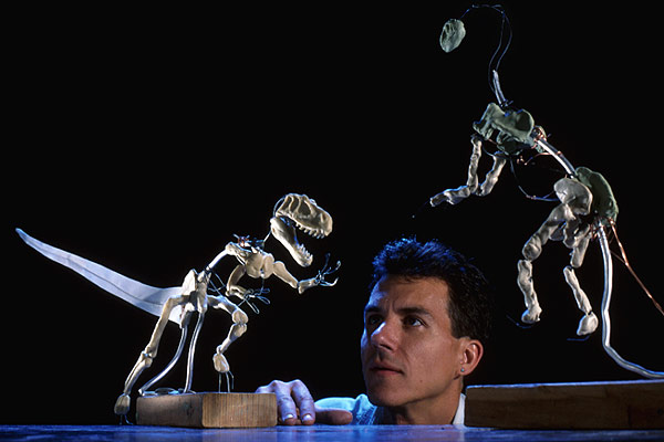 DINOSAUR EXPERT Paul Sereno, one of the worlds leading experts on dinosaurs, is a paleontologist with the University of Chicago. Dinosaur models made of wire and modelling clay help him determine poses for lifesize reconstructions of dinosaur skeletons. |