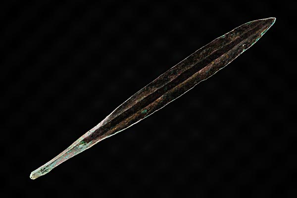 ARROW HEAD In chamber 1 of the royal tomb, a batch of six bronze arrow heads was found. All organic material of the arrows had turned to dust, except for traces of wood still clinging to the shaft ends of the arrow heads. 5.5" long, 14th century BC.
