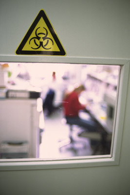 SEARCHING FOR VIRAL RNA In a post PCR lab RNA samples from suspected SARS patients are tested for traces of viral RNA by means of realtime PCR (polymerase chain reaction).