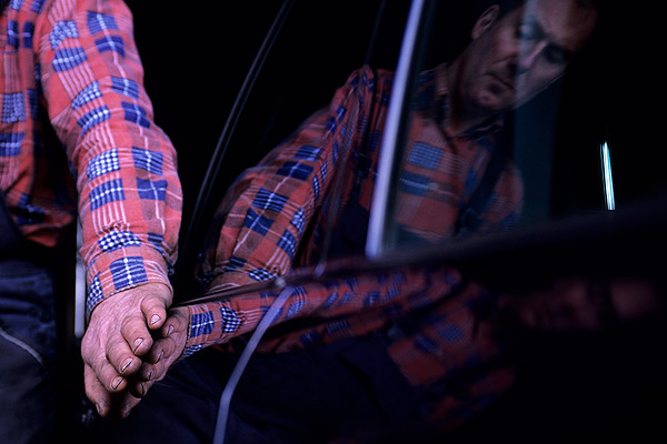 HAPTICS V With his palms, panelbeater Thomas Schibich inspects the bodywork of a used car in Leipzig, Germany. He is able to detect the slightest defects invisible to the eye which may indi- cate the car’s having been mended after an accident.
