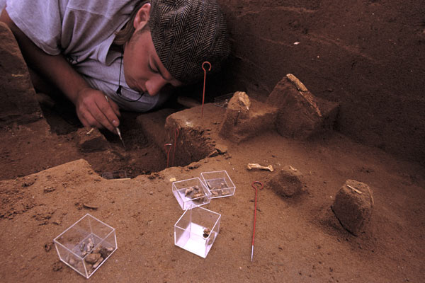 PICKING BONES Preparator Dennis Rößler uncovering fossil bones of an ice age ground squirrel.
