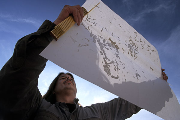 BLUEPRINT OF A DRAMA Paleontologist Dr. Ralf-Dietrich Kahlke with the photocopy of a detailed 1:10 map showing previous fossil finds from a small area of Untermassfelds ice age mass grave.