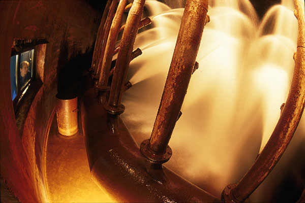 TOWER at a waterworks in Berlin Tegel. Groundwater is ventilated to induce flocculation of iron and manganese in order to remove these substances by filtration. At the same time the low air pressure causes hydrogen sulphide (from decomposition processes in the ground) and carbon dioxide to escape. |