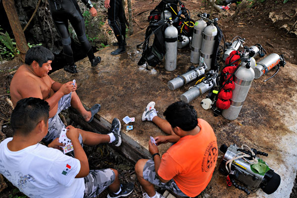 professional cave divers lower