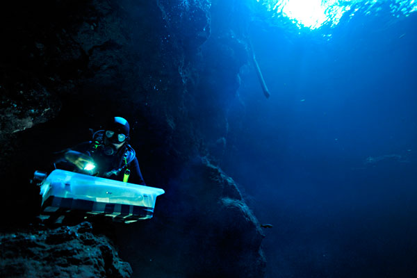 A professional cave diver in The Pit