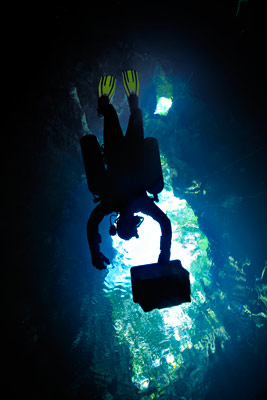 ground sloth, a cave diver surfaces